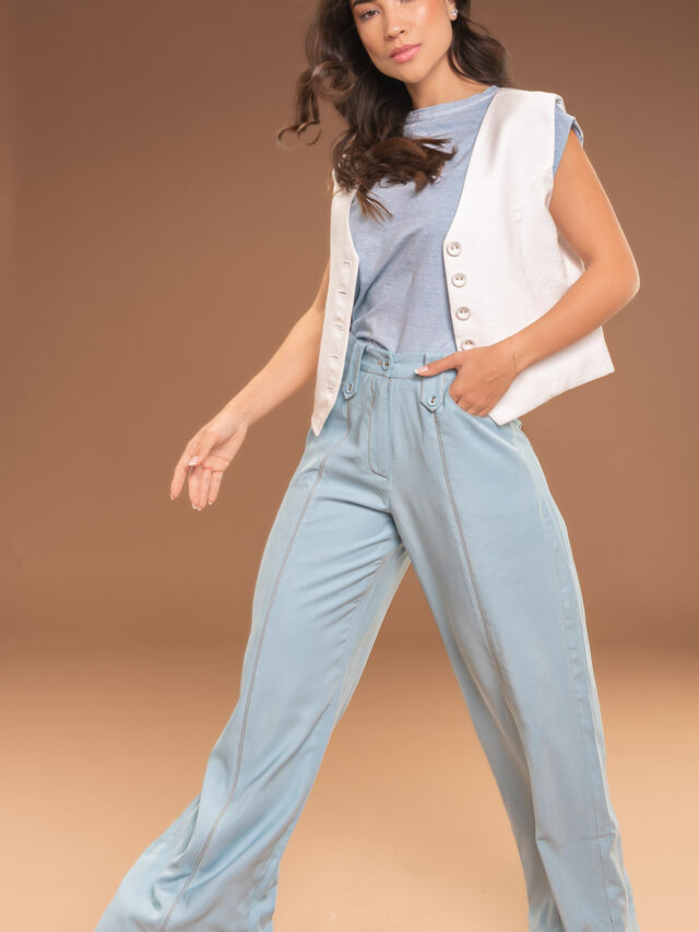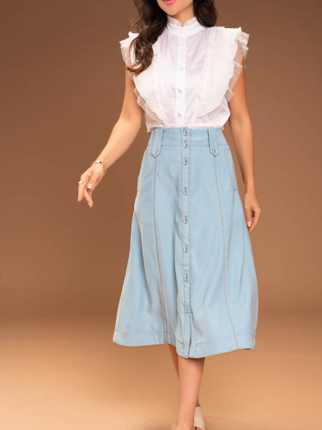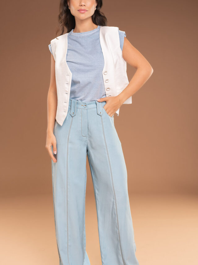 SAIA MIDI PESPONTO ALFAIATARIA AZUL