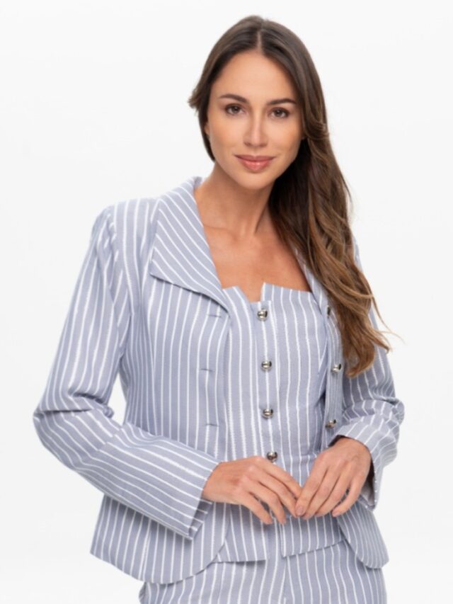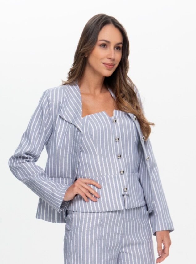 R$930,00 ou 10x de R$93,00BLAZER ALFAIATARIA VICKY LISTRAS AZUL