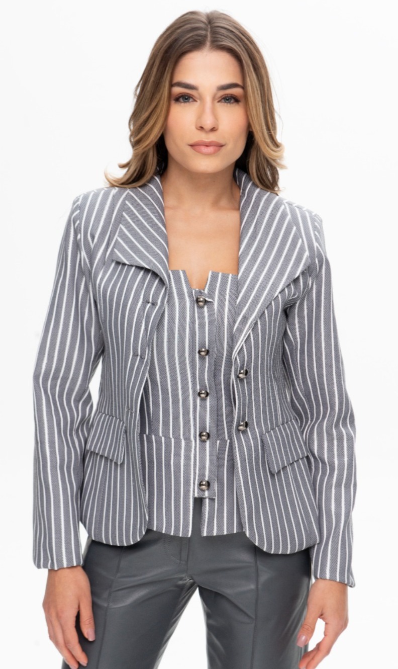 Blazer de Alfaiataria com Listras, Estilo Clássico com Toque Atual
