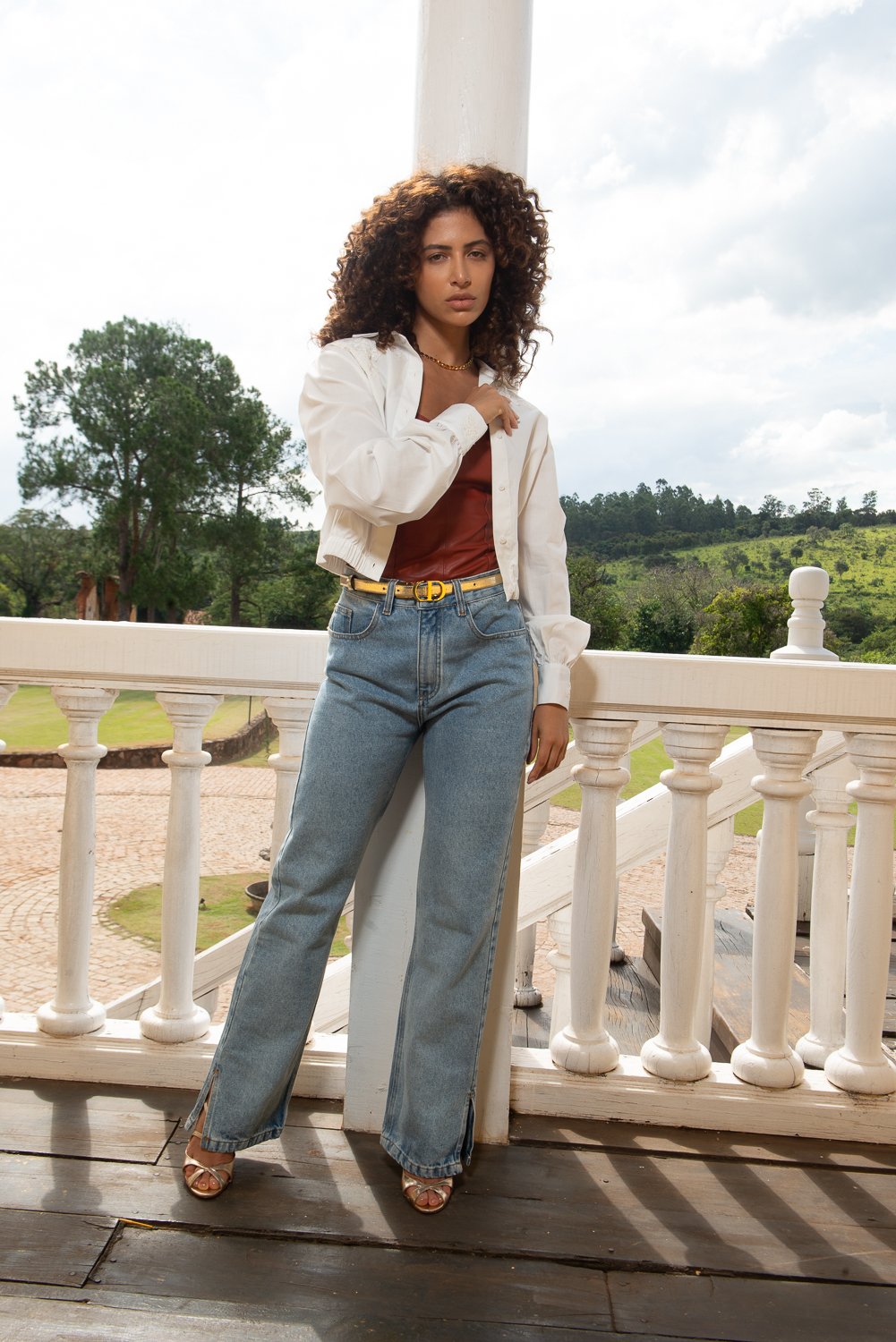Confeccionada em jeans 100% algodão, essa calça oferece conforto, durabilidade e um caimento estruturado que valoriza o corpo.