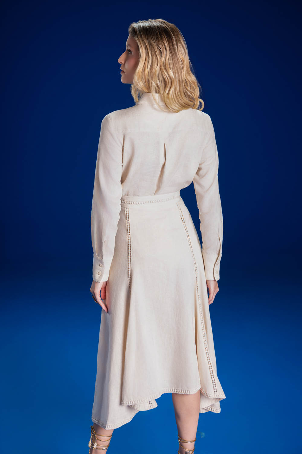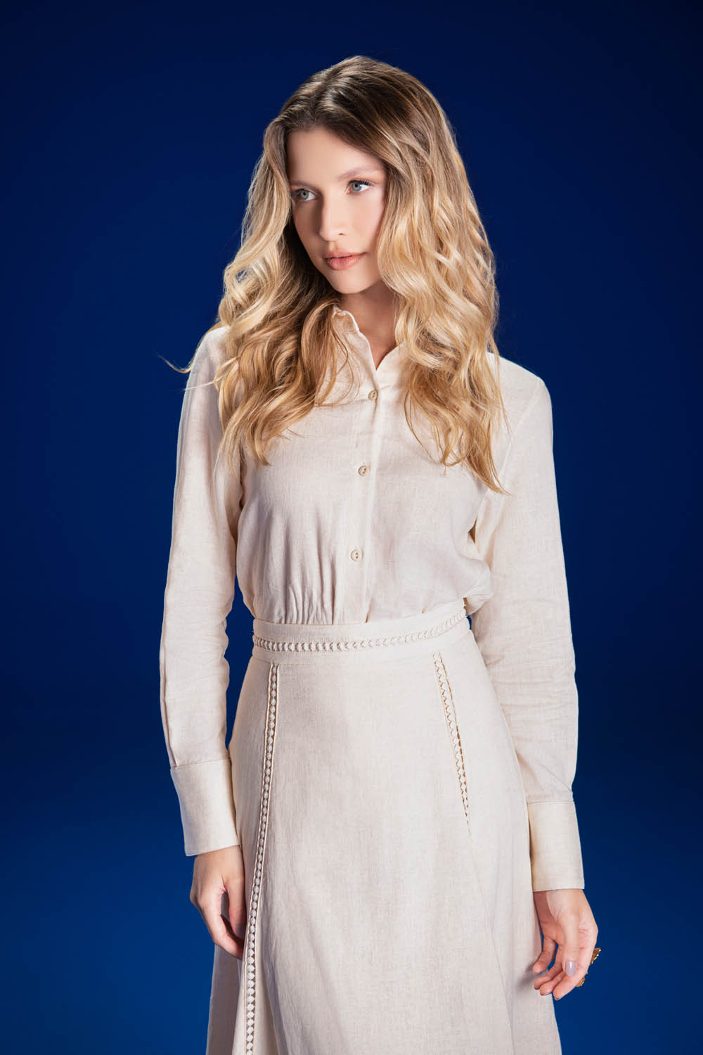 Peça essencial para quem busca elegância, conforto e sofisticação. Feita com linho de alta qualidade, ela proporciona frescor e leveza, ideal para os dias mais quentes. Seu tom neutro e versátil combina facilmente com diferentes looks, desde os mais casuais até os mais formais.