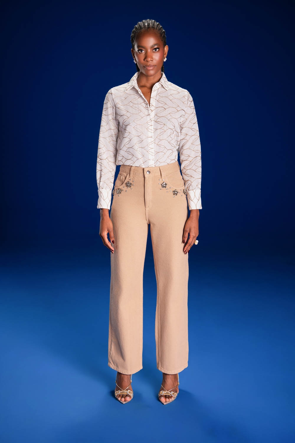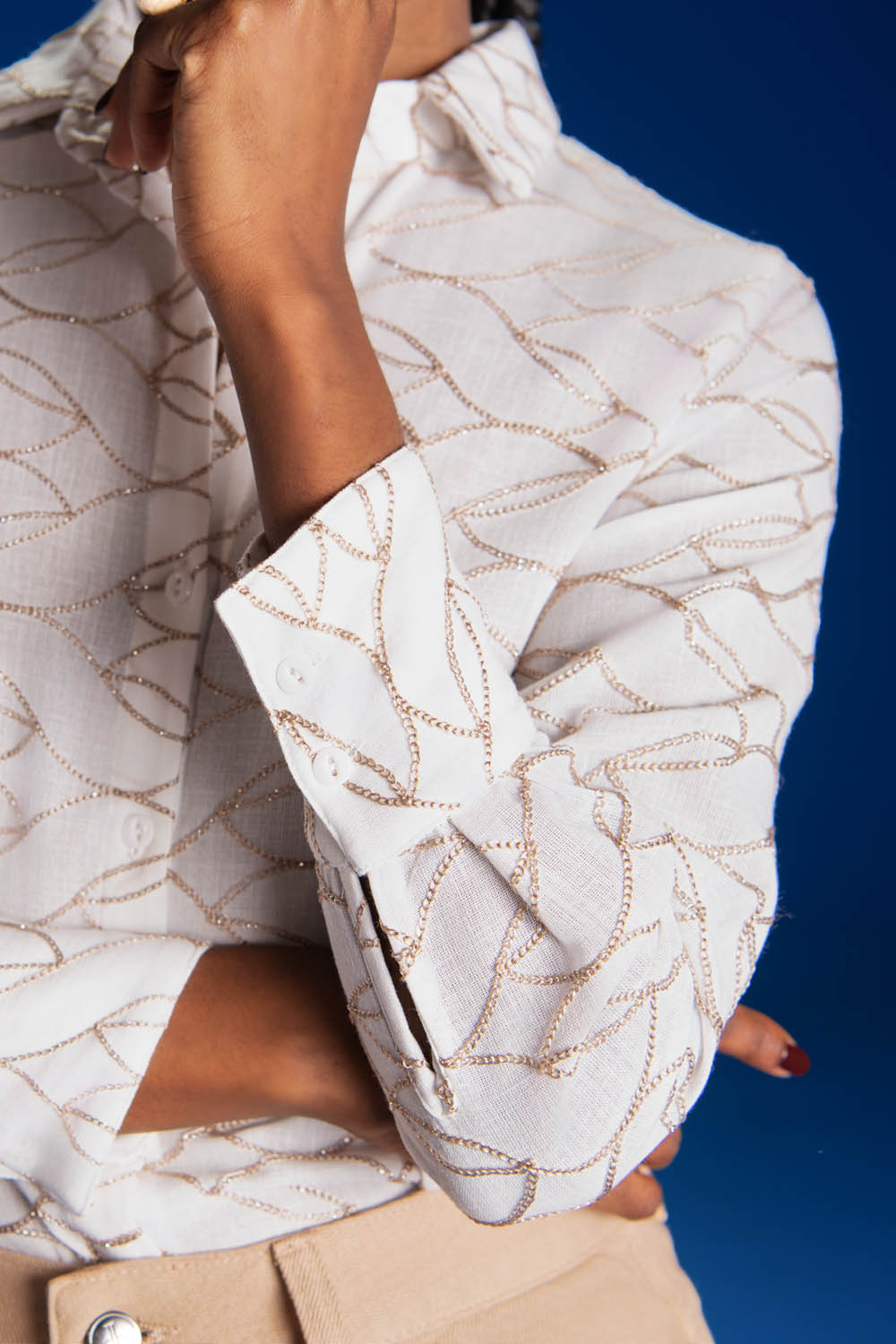 Confeccionada em linho de alta qualidade, oferece frescor e leveza, ideal para dias quentes. O bordado delicado adiciona um toque de elegância única, tornando essa camisa perfeita para ocasiões casuais ou formais. Versátil e atemporal, ela pode ser combinada com calças, saias ou até shorts, garantindo um look chic e sofisticado.