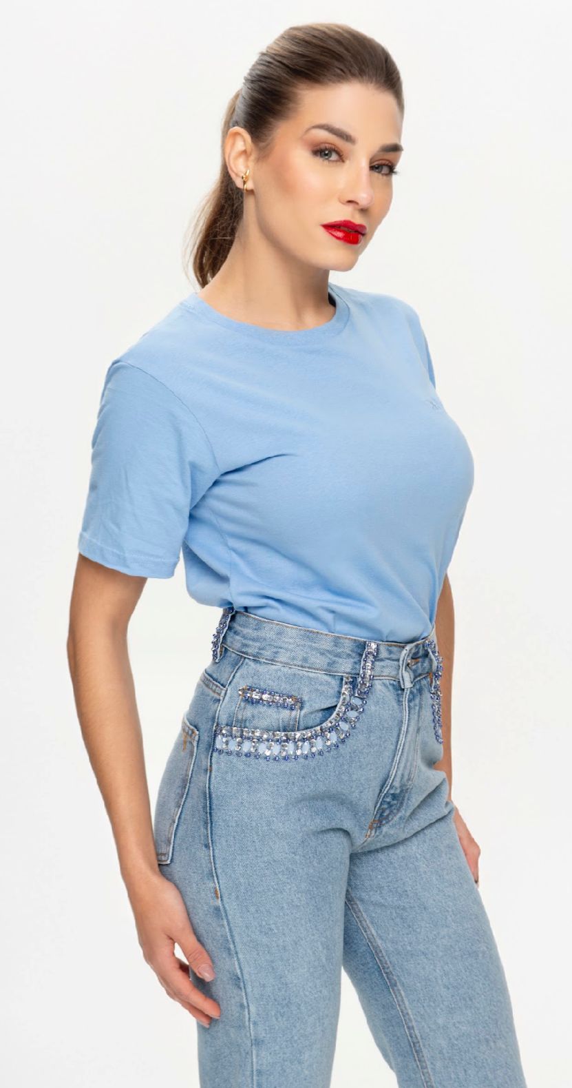 CAMISETA BORDADA BORBOLETA AZUL