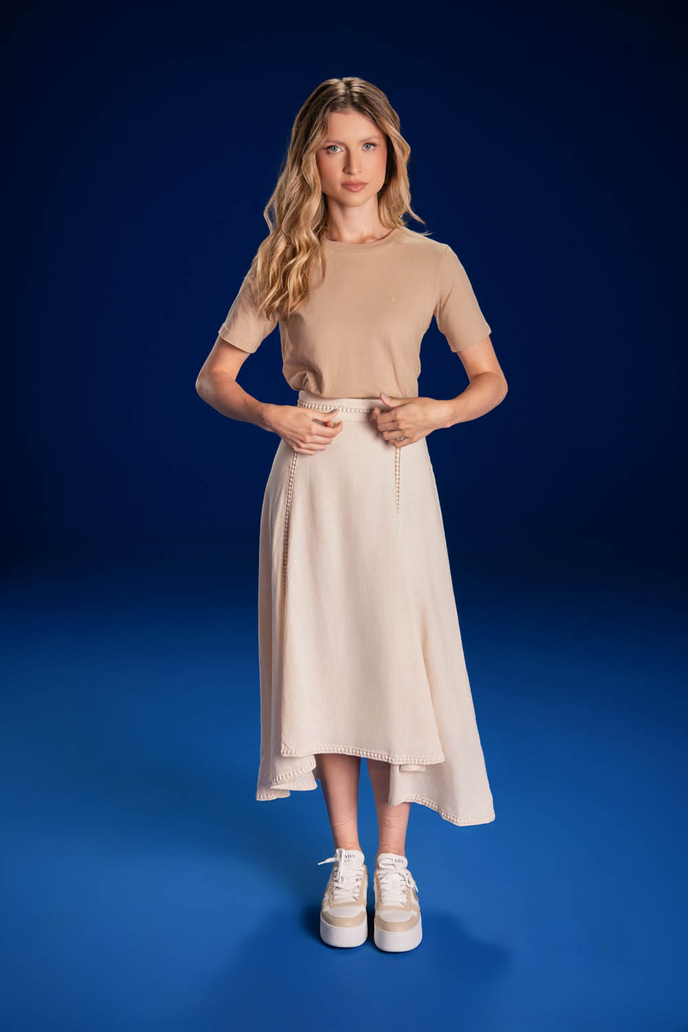 CAMISETA BORDADA BORBOLETA BEGE