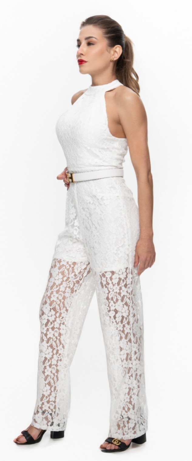 Macacão de Renda Sem Manga – Elegância em Uma Peça Só
