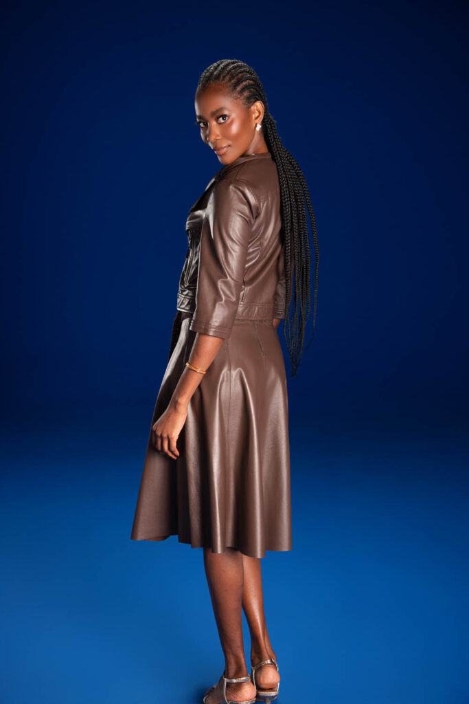 JAQUETA COURO MANGA 3/4 CAFÉ