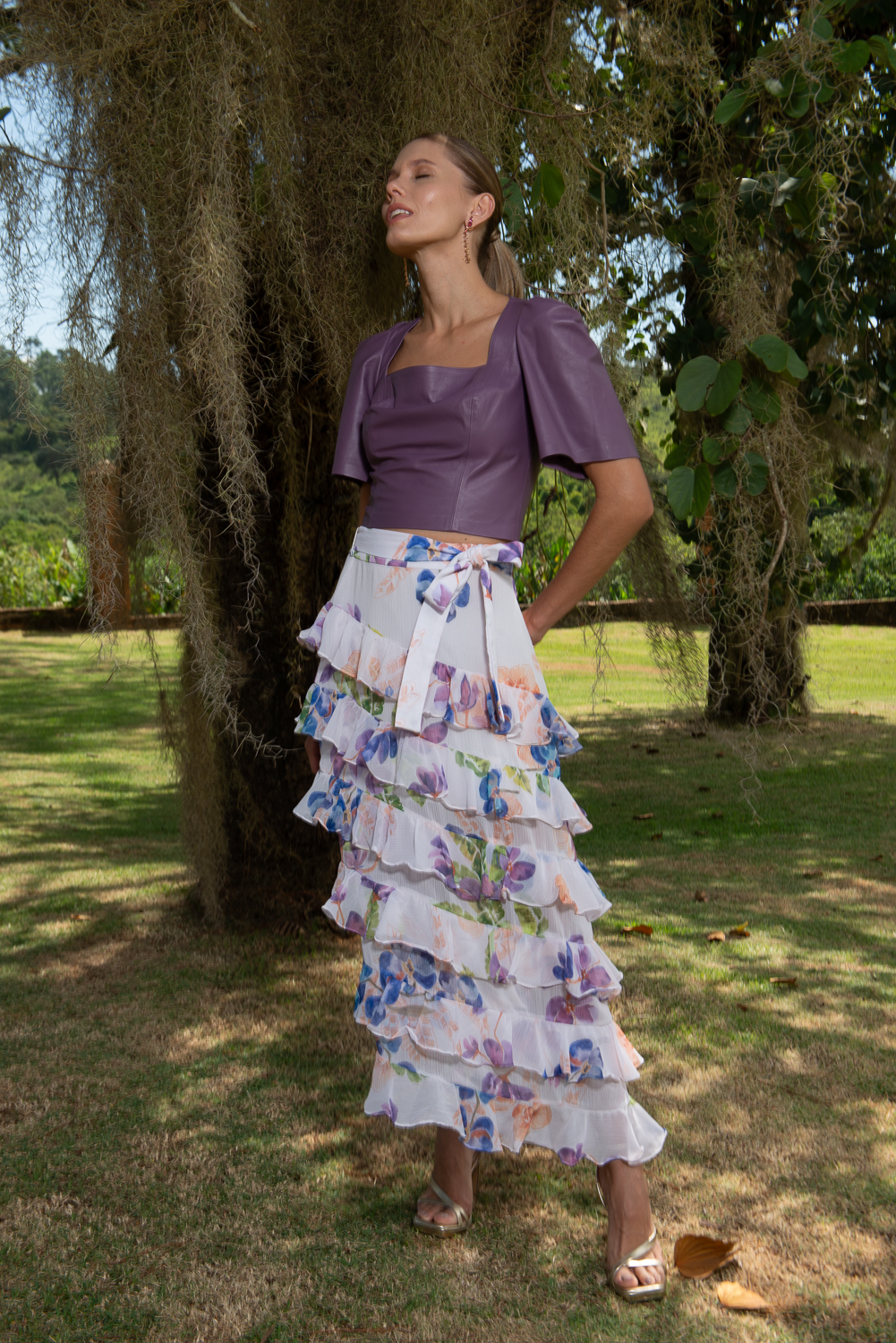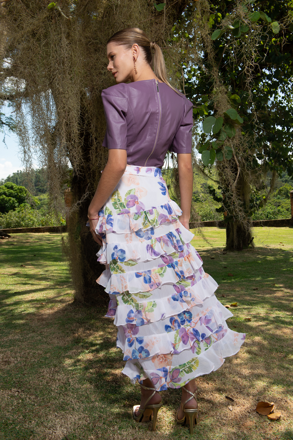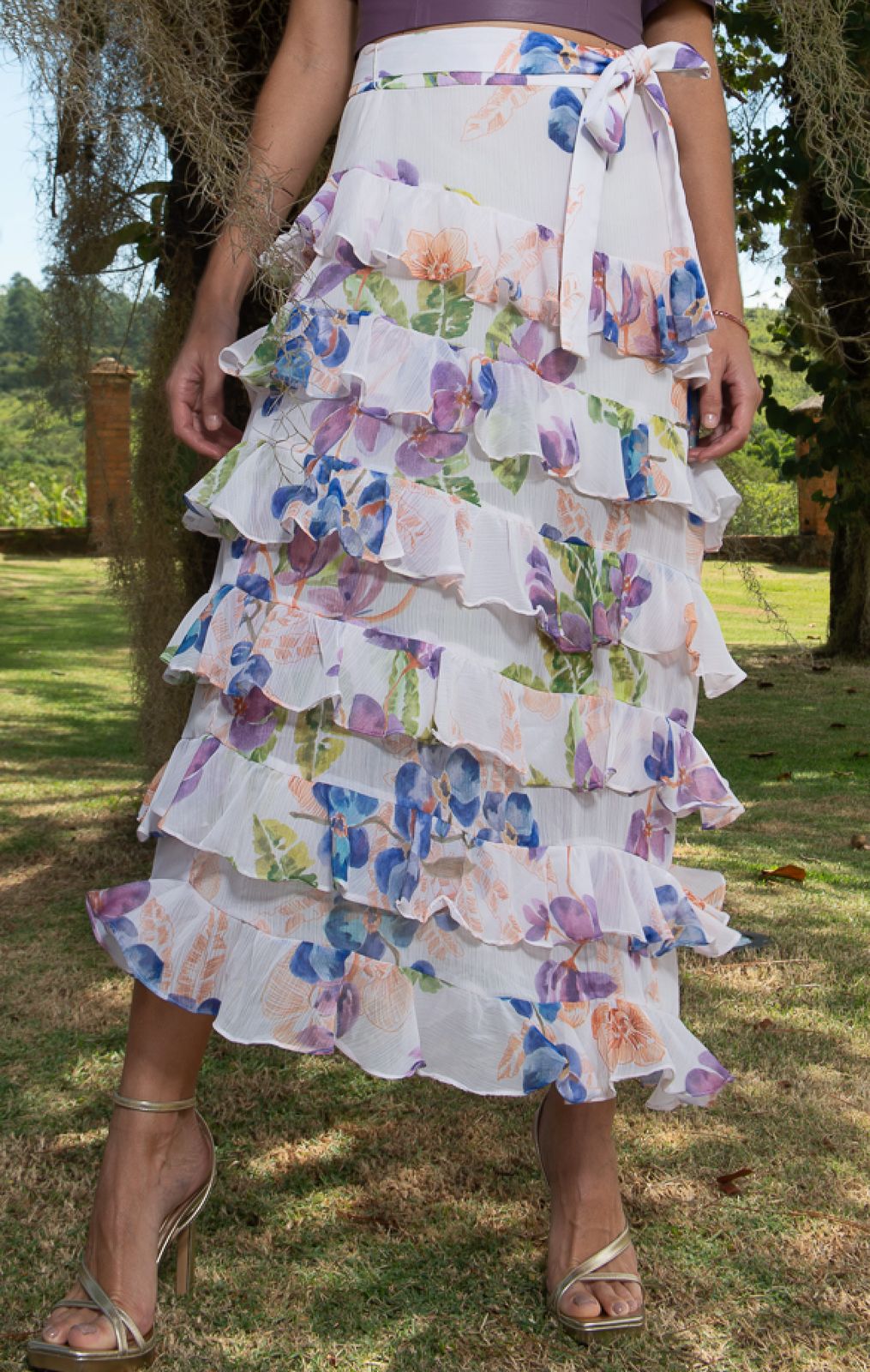 Saia com Babados – Estampa Exclusiva de Orquídea