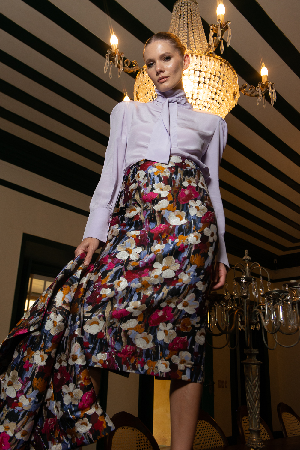 Clássica e atemporal, a saia lápis em jacquard é perfeita para quem busca sofisticação com toque de exclusividade. O tecido jacquard traz textura rica e desenho sutil, elevando a peça com acabamento refinado e caimento estruturado. Modelagem lápis que valoriza a silhueta,tecido jacquard encorpado, estampa elegante.