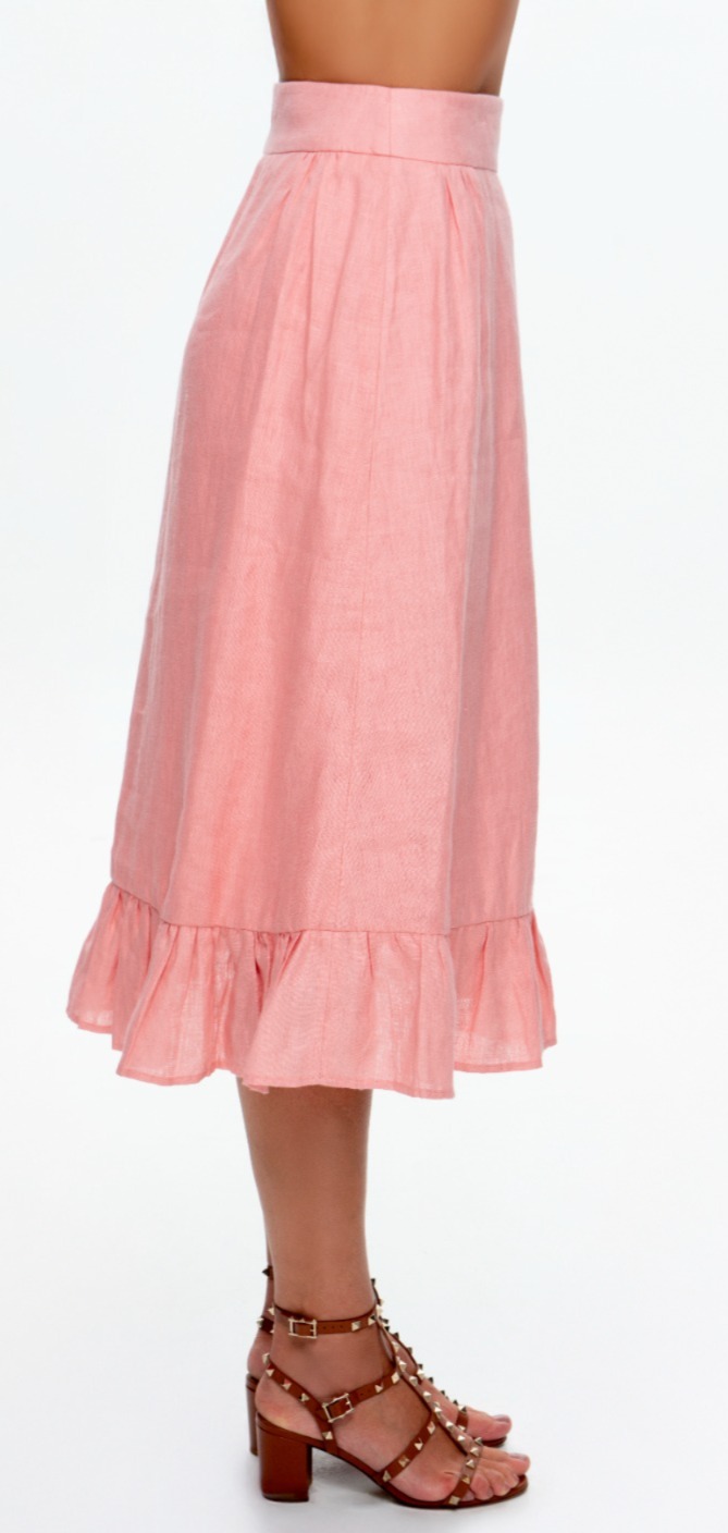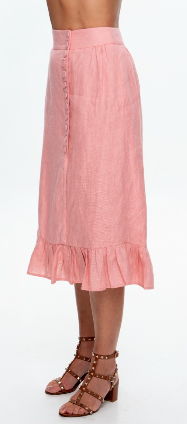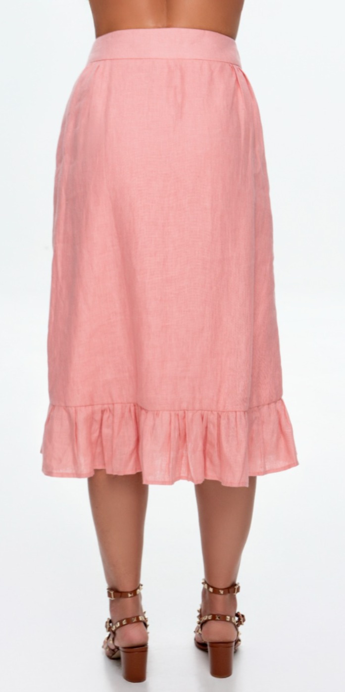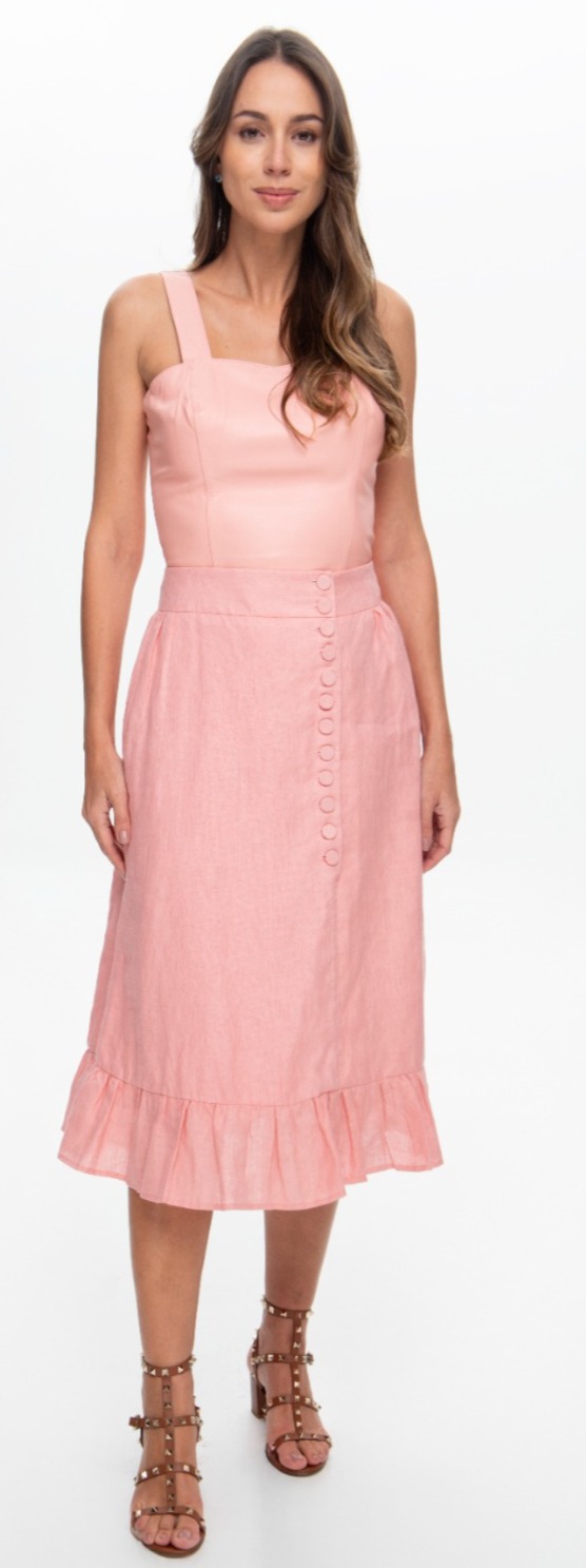 Saia de Linho com Botões e Babado – Elegância Natural com Movimento Suave