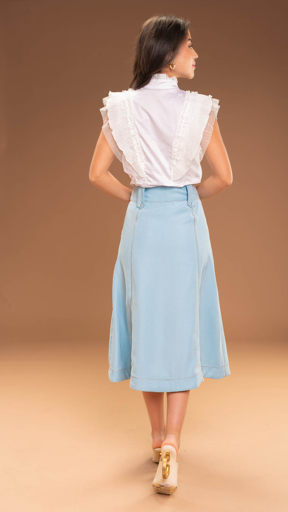 SAIA MIDI PESPONTO ALFAIATARIA AZUL