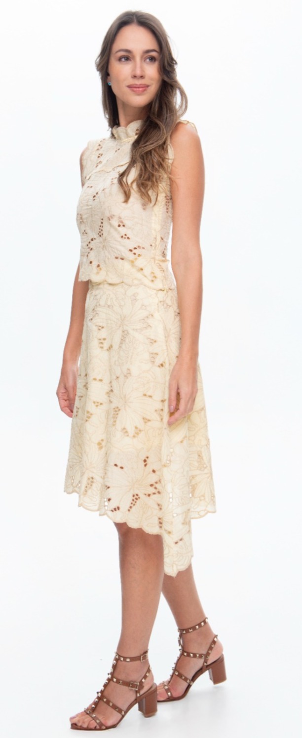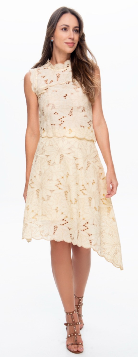 A barra com acabamento ondulado valoriza ainda mais a peça, criando um movimento suave e feminino. Combine com a regata do mesmo bordado para um conjunto leve, romântico e exclusivo — ou use com peças lisas para um visual equilibrado e elegante.
