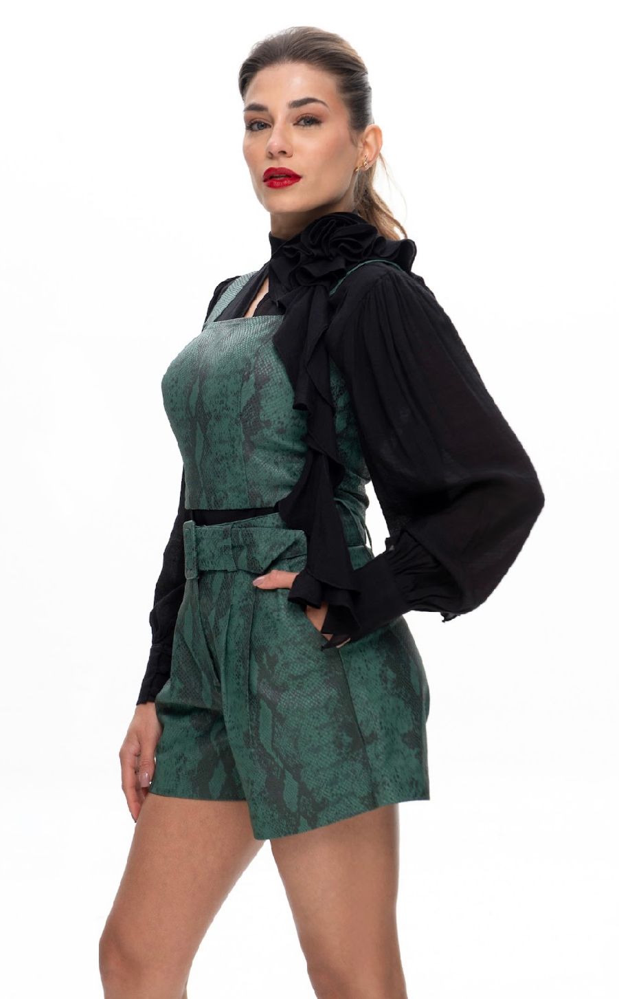 SHORTS COURO COM CINTO VERDE ANIMAL PRINT
