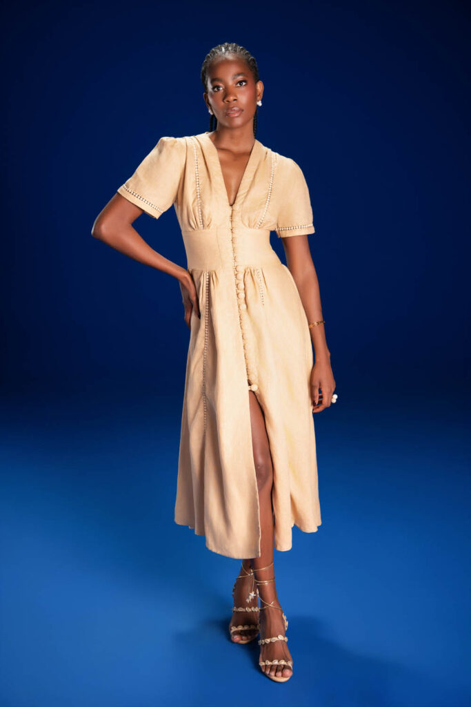 VESTIDO LINHO ENTREMEIOS AREIA