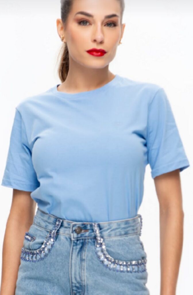 CAMISETA BORDADA BORBOLETA AZUL