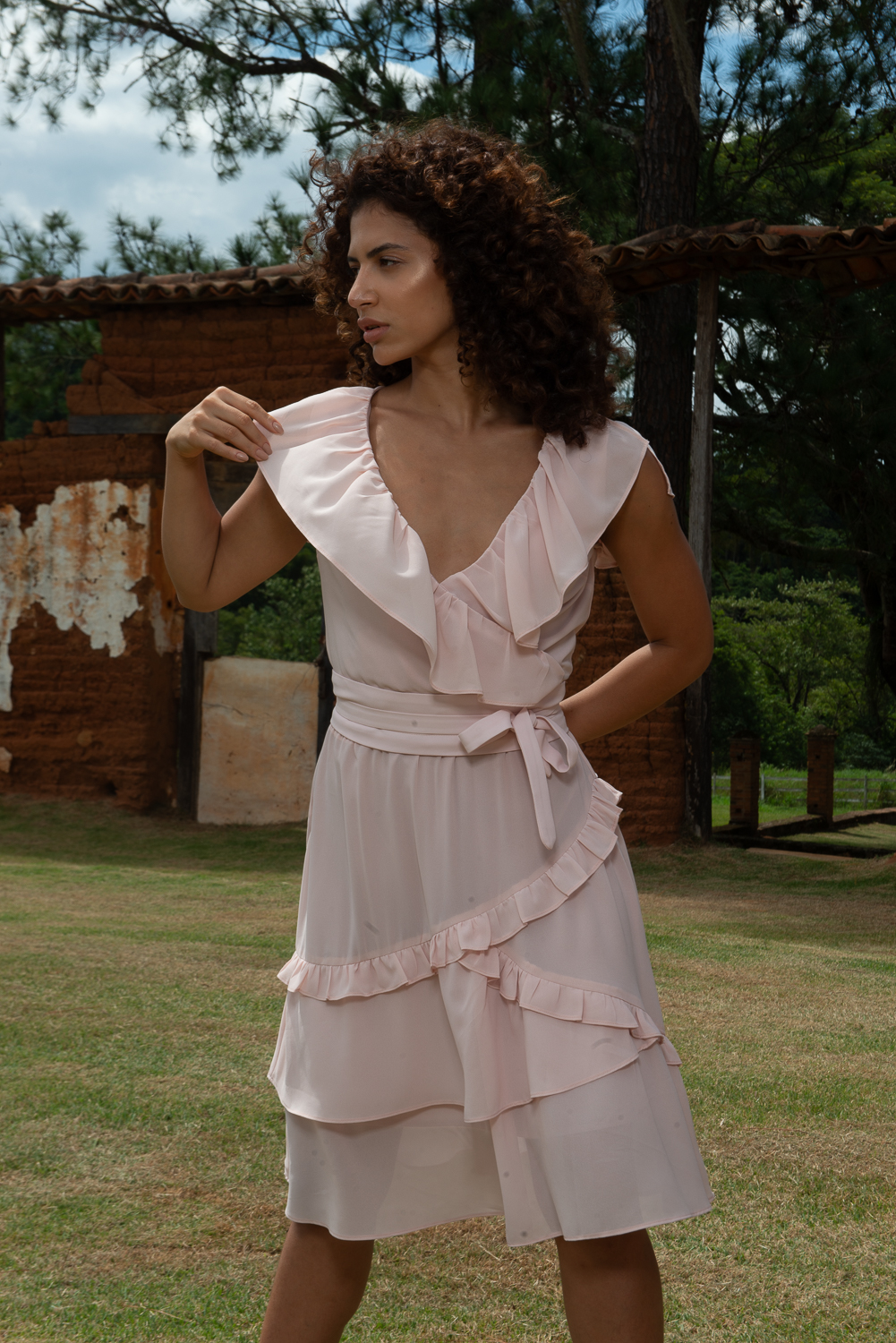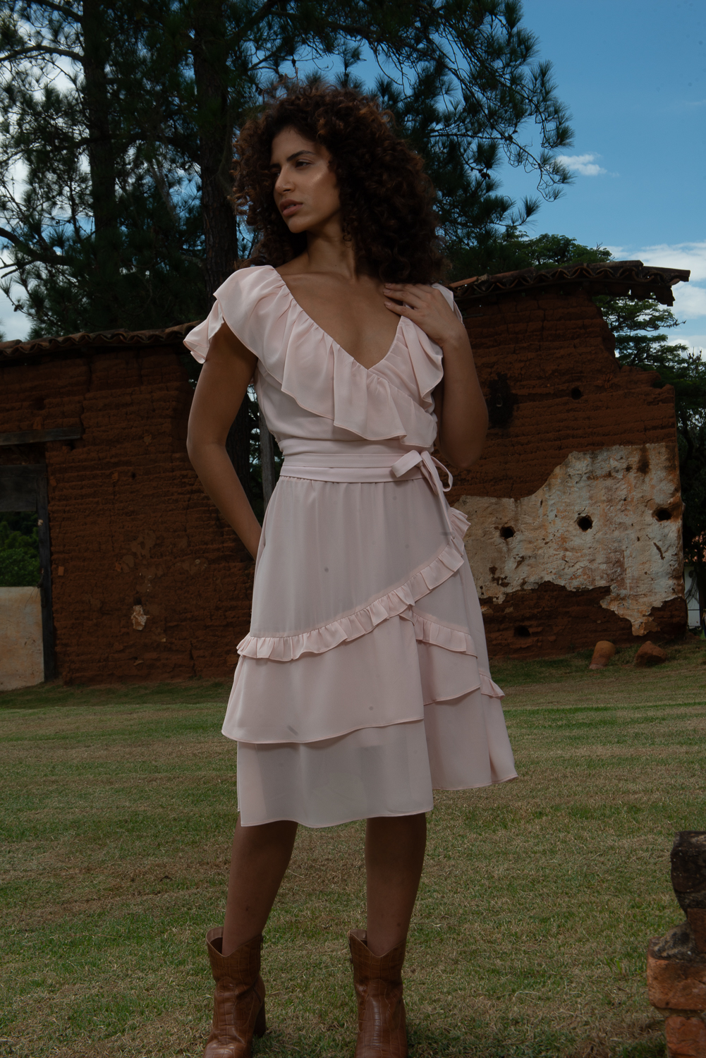 Babados estratégicos que criam fluidez e charme ao caminhar.