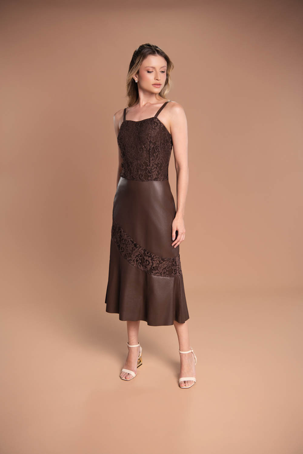 VESTIDO SEDA ONÇA SANDRA MARROM