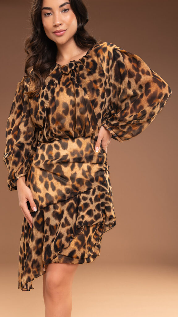 VESTIDO SEDA ONÇA SANDRA MARROM